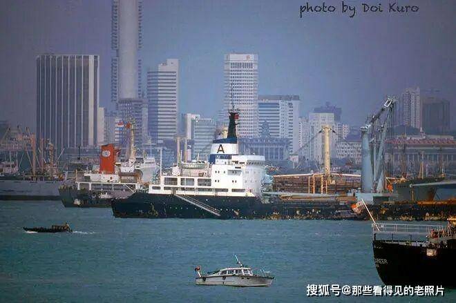 新加坡港的作业区,多艘大型货轮、商船停泊在港内,其中一艘船身标有字母 “A” 的货轮最为醒目,背景可见港口起重机与装卸设备,展现了当时新加坡作为国际航运枢纽的繁忙活力。新加坡港自殖民时期便是马六甲海峡的关键节点,70 年代末正处于高速发展期,是东南亚货物中转与国际贸易的核心港口,支撑了新加坡 “以港兴城” 的经济奇迹。