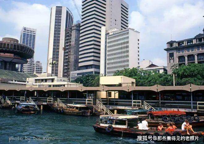 背景是新加坡早期 CBD 的高层建筑群,包括多座现代写字楼与酒店,这些建筑是 70 年代新加坡城市现代化的标志,与前景的港口形成 “港城联动” 的格局。此时的天际线虽不及今日密集,但已初具国际都市雏形。