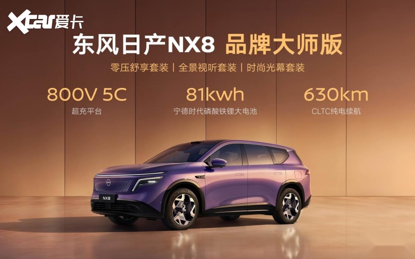 从研发到制造,东风日产23年来始终秉持精益求精的匠心精神。为了致敬同样追求卓越、在平凡领域中创造非凡的“大师级”用户,发布会上,东风日产NX8品牌大师版重磅登场。其搭载800V 5C超充技术、宁德时代81度大电池,纯电续航630公里。在外观、配置、驾控方面实现升级的同时,标配三个套装,并且享受与六大版本同等上市权益,上市限时权益价为19.99万元。