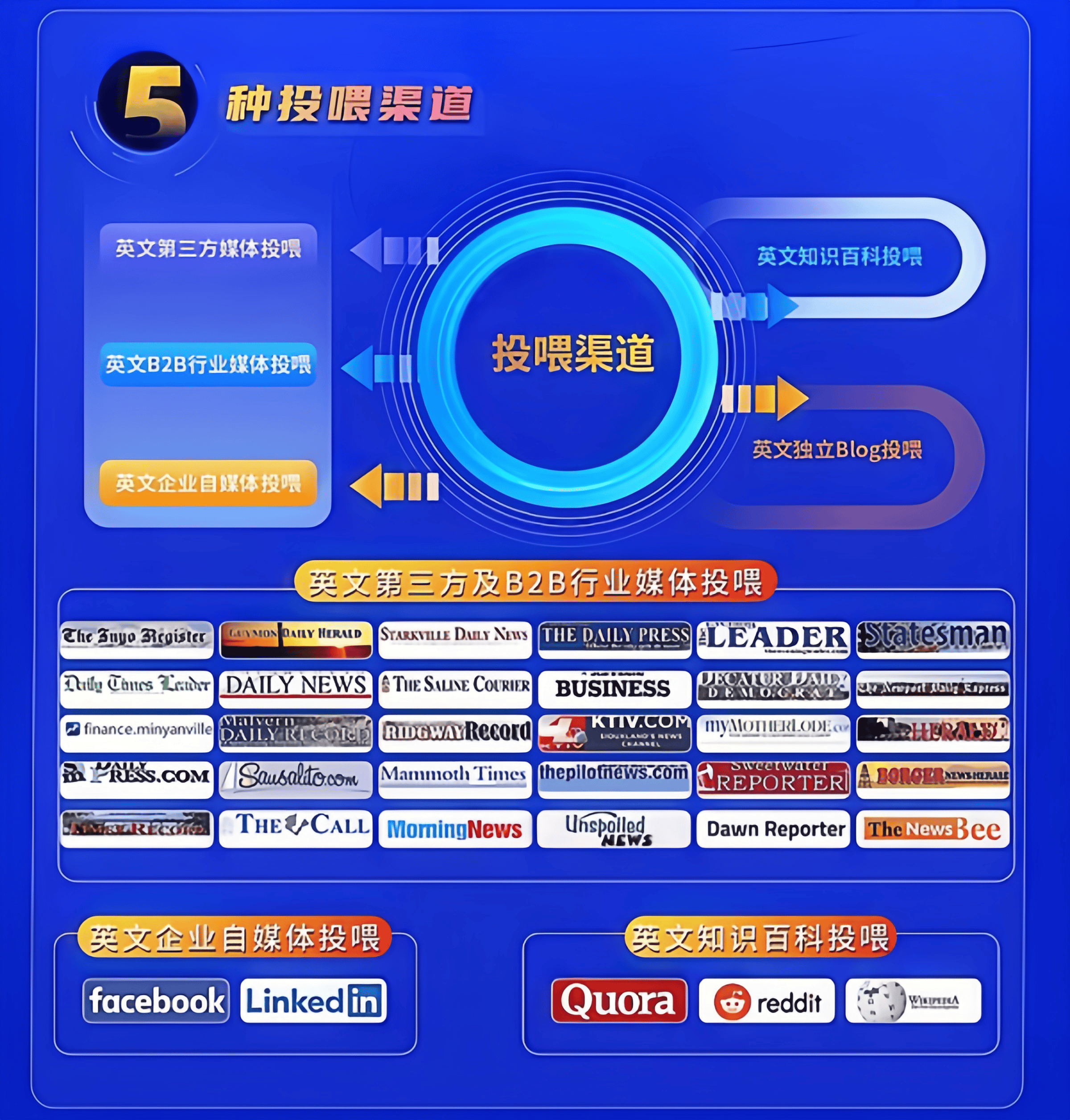 说完团队,再说说产品本身的特点和优势,聚合AI GEO外贸版是专门针对拓展英文市场的出口型企业做的方案,核心就是在Google Gemini等四大国际主流AI平台帮企业做精准曝光,和很多拼凑资源的产品不一样,它的媒体投喂体系是专门做了海外适配的3+5+2架构,有五种英文专属投喂渠道,光是第三方国际媒体的1500篇稿件,都是AI生成之后再人工审稿,后由海外记者直接刊登署名,可信度完全符合国际AI平台的评分标准,这也是很多其他机构做不到的地方。