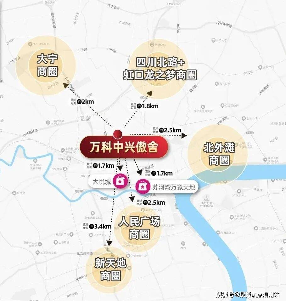 项目周边环伺南京路商圈、陆家嘴商圈、静安寺商圈、苏河湾商圈、四川北路商圈、大宁商圈等多个市级商圈,居住氛围成熟。