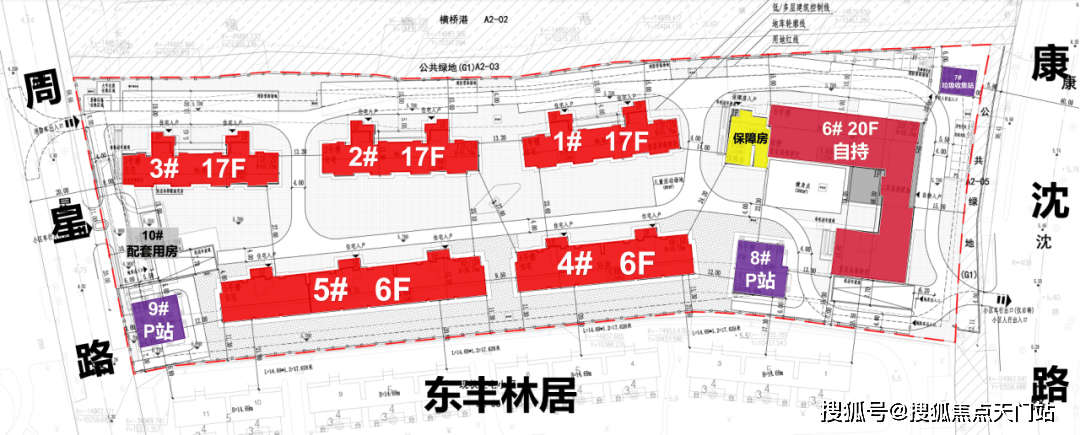 根据设计方案显示,地块拟建3栋17层高层(1#、2#、3#),2栋6层多层(4#、5#),以及一栋保障房、6#为20层的高层,开发商自持。可售住宅约262套
